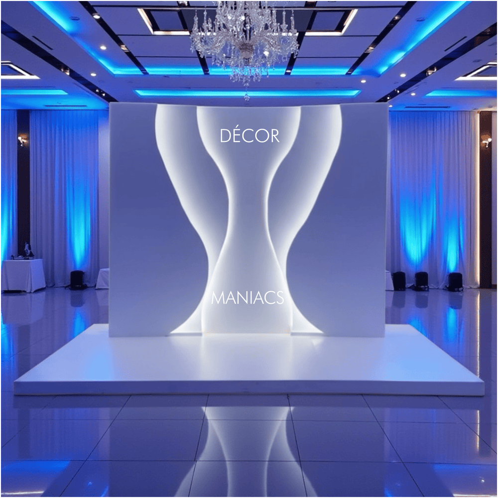 Make a statement without saying a word. Our Sculptured LED Wedding Backdrop & Stage Rental is a custom, architectural showpiece designed for luxury weddings and high-end events. Clean lines, sculpted curves, and soft integrated LED lighting come together to create a dramatic yet elegant focal point that instantly elevates any space.