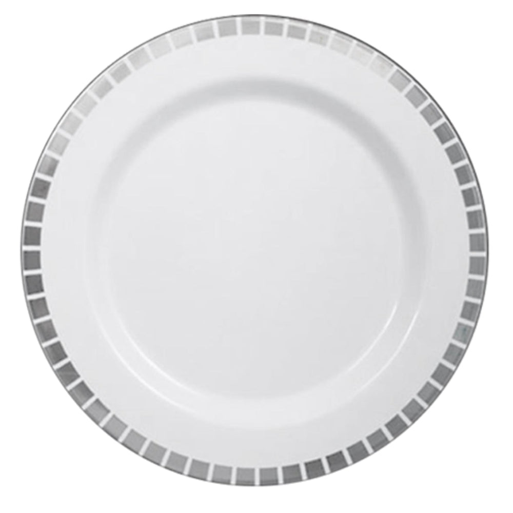 10.25 In. White/Silver Slit Design Plates | 10 Count10.25 In. White/Silver Slit Design Plates | 10 Count