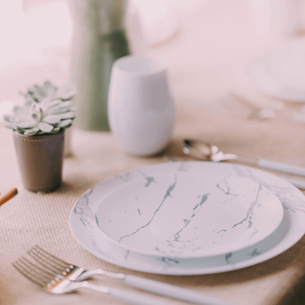 Constructed From Premium Plastic, Our Plates Mimics The Luxurious Look And Feel Of Real China, While Their Disposable Nature Ensures Easy Cleanup. To Achieve A Cohesive Look, Pair These Plates With Our Matching Metallic Cutlery Line, Further Enhancing The Visual Appeal Of Your Table.