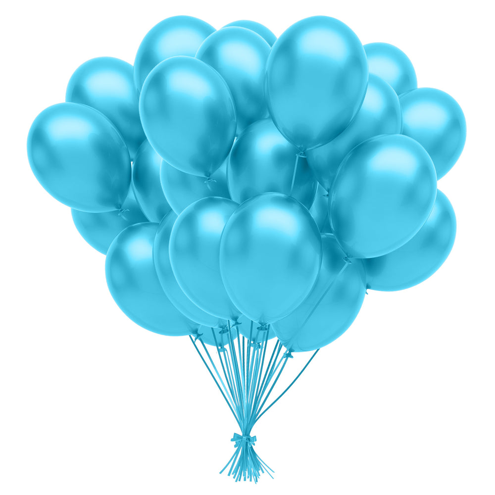 Create a stunning tropical vibe with these 12-inch turquoise latex balloons. Bulk 72-count pack perfect for parties, showers, and elegant events!