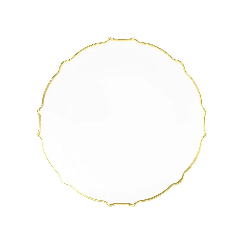 Elevate your table setting with these 7.5" Clear/Gold Petal Plates. The intricate petal design paired with the luxurious gold accents adds an elegant touch to any occasion. This set of 20 plates is perfect for serving appetizers, desserts, or small bites, making your gatherings even more special.