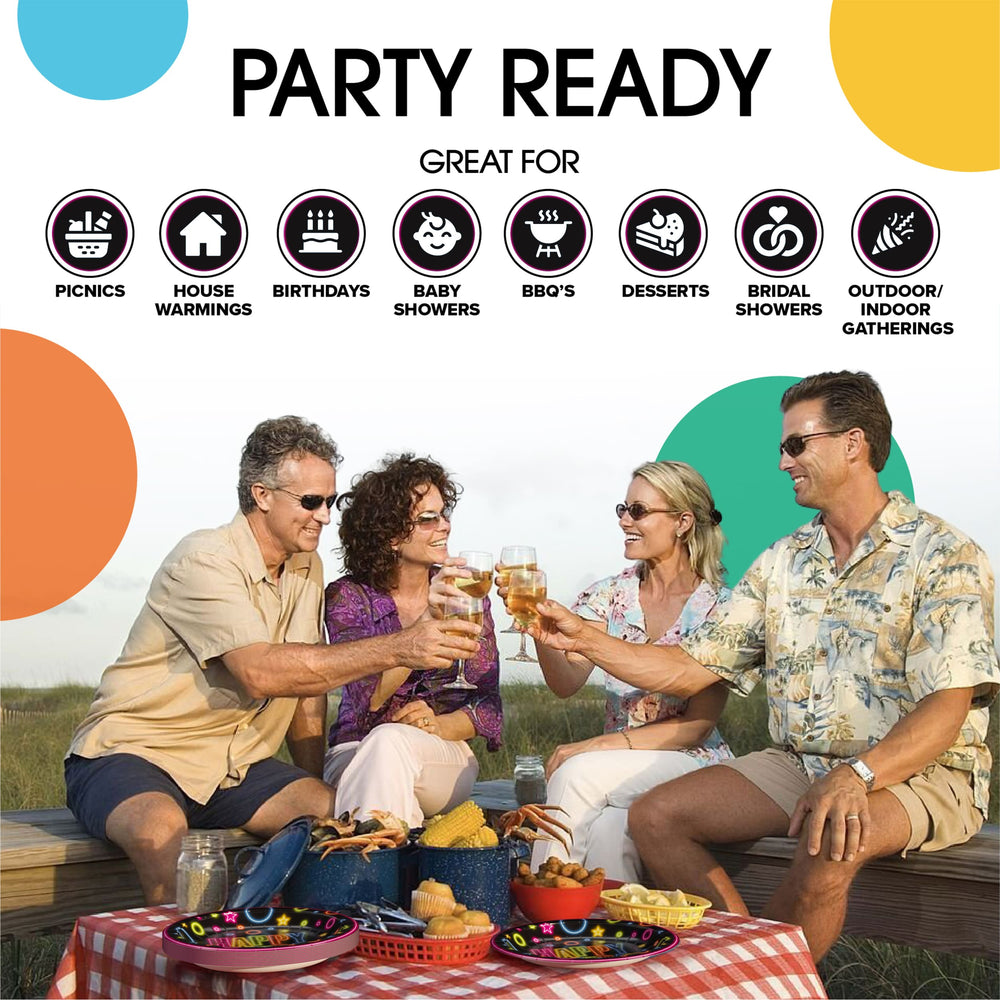 Indulge in a sophisticated celebration with our 7 In. Neon Birthday Print Paper Plates - 50 Ct. These premium plates add a touch of luxury with their neon birthday print and are perfect for any upscale occasion. Make a statement with these elegant plates that will impress your guests.