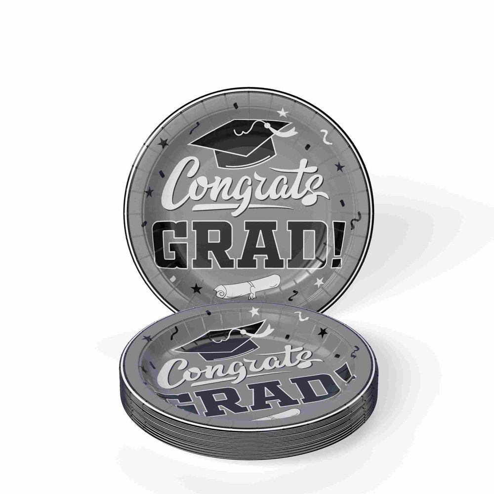 Embrace the thrill of graduation with our 7 inch White/Silver plates, perfect for adding a touch of elegance to your celebration! This pack of 24 ensures that all your guests can commemorate this milestone together. Take a risk and make your event one to remember!