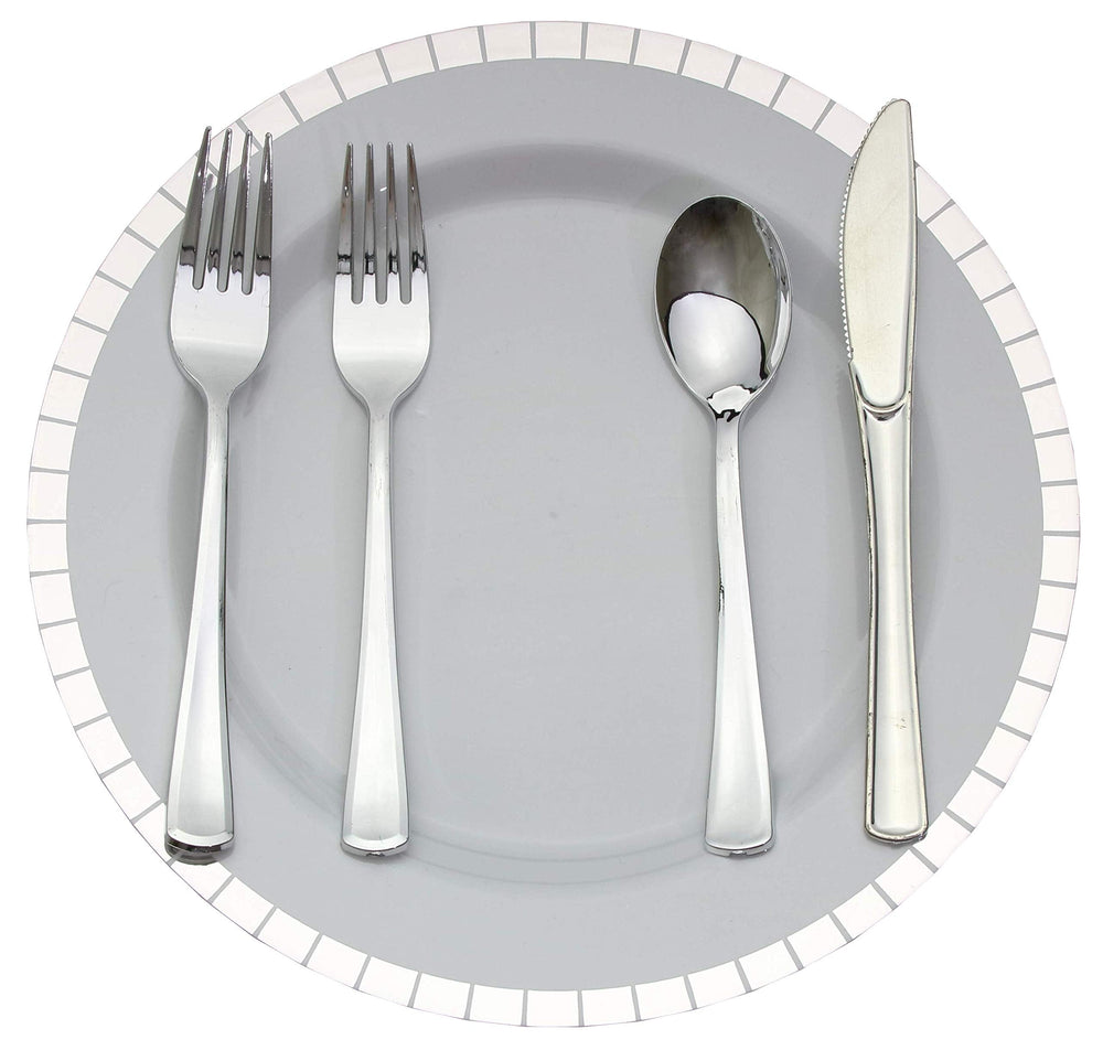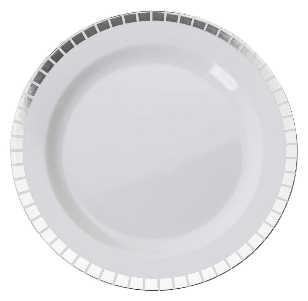 Elevate Your Dining Experience With Our Premium Disposable Plates, Distinguished By Their White Base With A Silver Slit Design That Adds A Touch Of Elegance To Your Table Setting. Each Pack Contains 10 Plastic Plates. Our Elegant Plastic Plates Are Crafted To Offer Both Sophistication And Convenience, Allowing You To Create An Effortlessly Chic Table Arrangement Without The Fuss. The Classic Metallic Design Serves As A Stylish Complement To Your Culinary Presentations, Blending Seamlessly With Any Table Decor To Enhance The Overall Dining Ambiance. Ideal For Those Who Prioritize Both Flair And Functionality, These Plates Are The Perfect Choice For Showcasing Your Impeccable Taste.