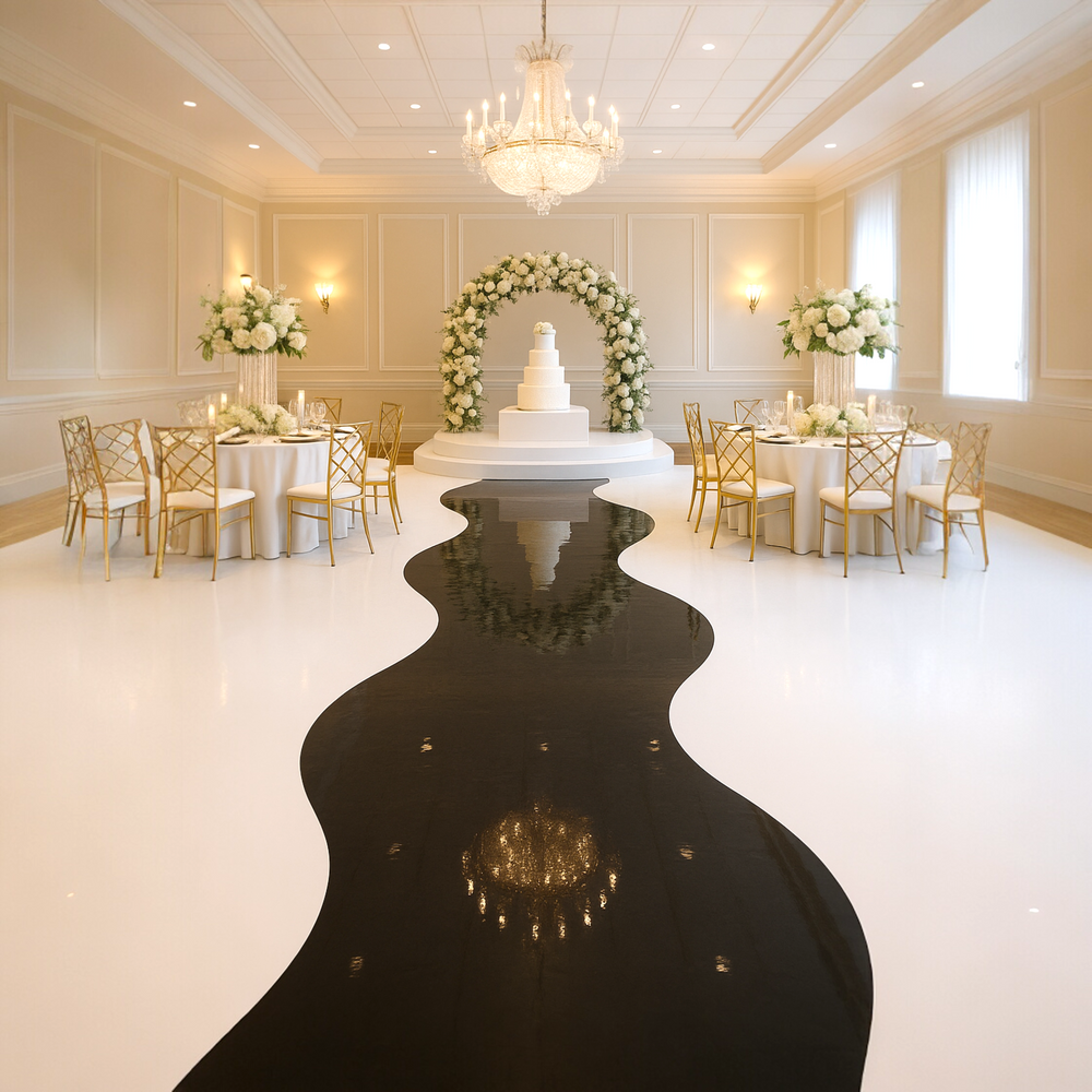 Whether it’s a hotel ballroom, outdoor tent, or luxury event hall, this wavy vinyl aisle turns your venue into a runway moment. Because your entrance should be as iconic as your “I do.”