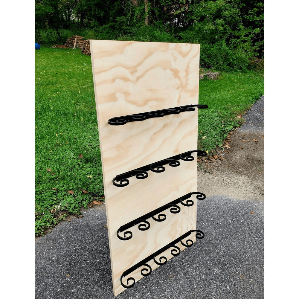 Diese elegante Champagnerwand verleiht Ihrer nächsten Veranstaltung einen Hauch von Luxus. Sie besteht aus robustem 3/4-Zoll-Sperrholz und Metallregalen und bietet Platz für bis zu 24 Champagnergläser. Die Wand ist 48 Zoll hoch und 24 Zoll breit und hat damit die perfekte Größe für kleine Veranstaltungen.