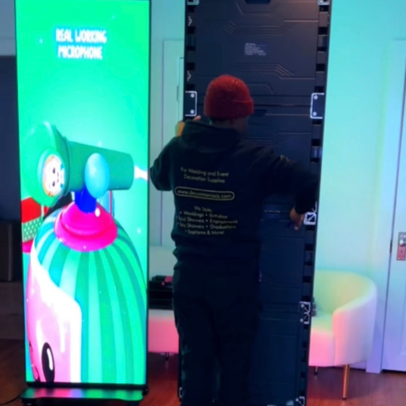 Upgrade your event entrance from a static foam board to a stunning, moving display. Our Digital Welcome Sign is a sleek, 6-foot tall LED video poster that brings your engagement photos, seating charts, or hype reels to life in brilliant high definition. It’s the modern way to greet guests and set the tone the moment they walk in.