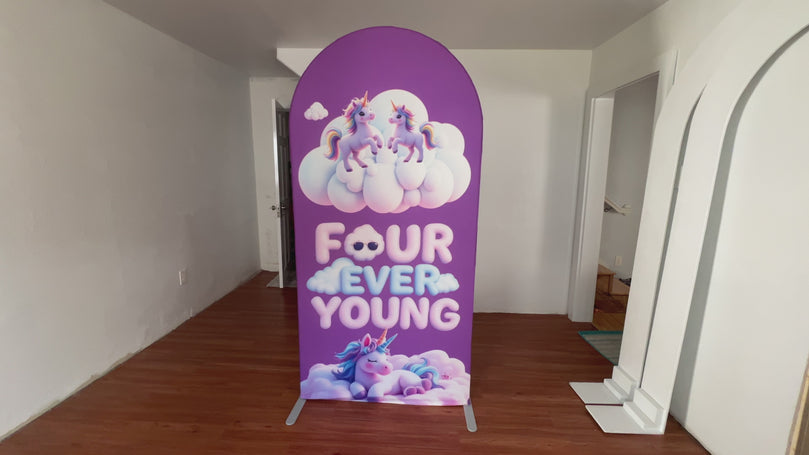Four Ever Young Fabric Arch Cover - 4th Birthday Party Decor