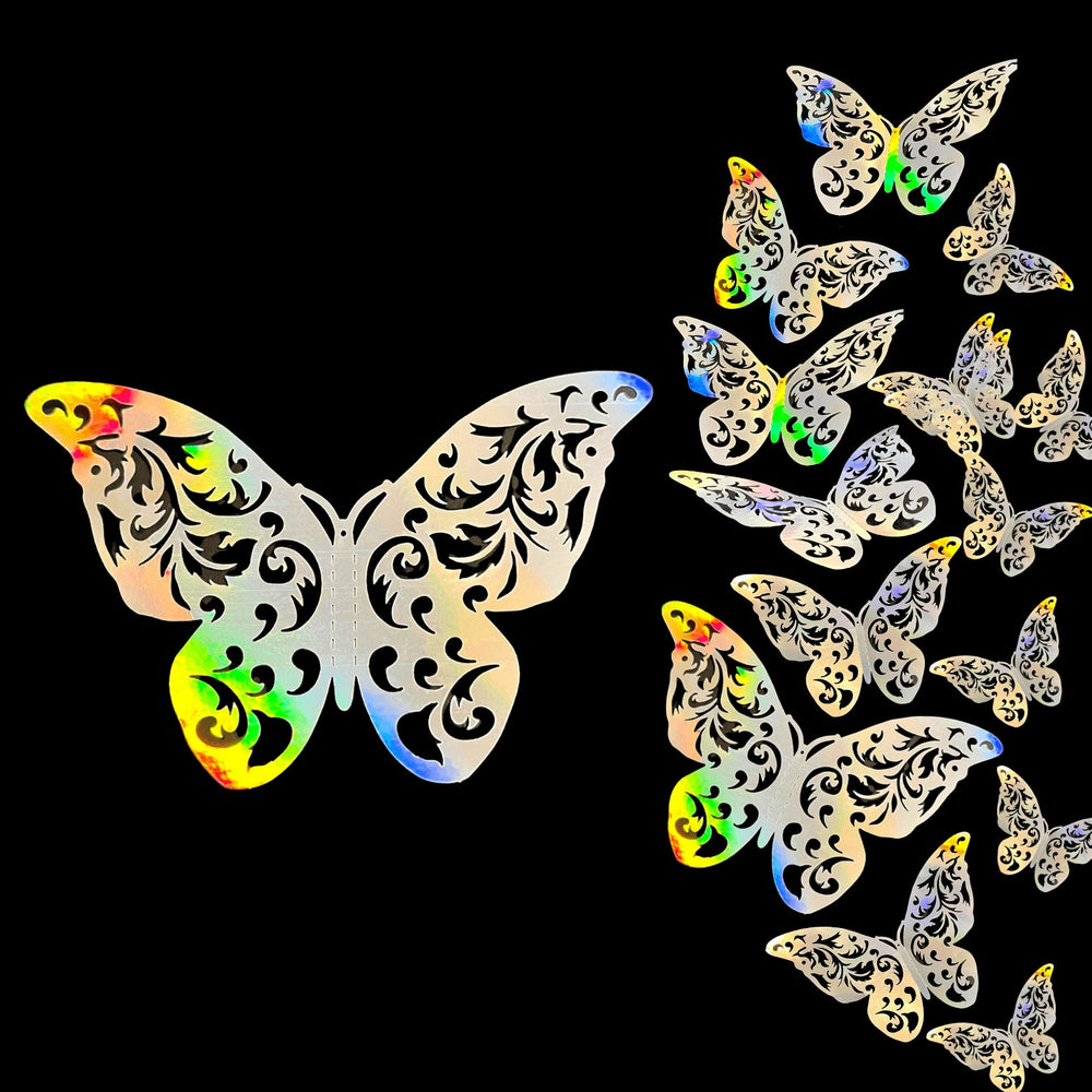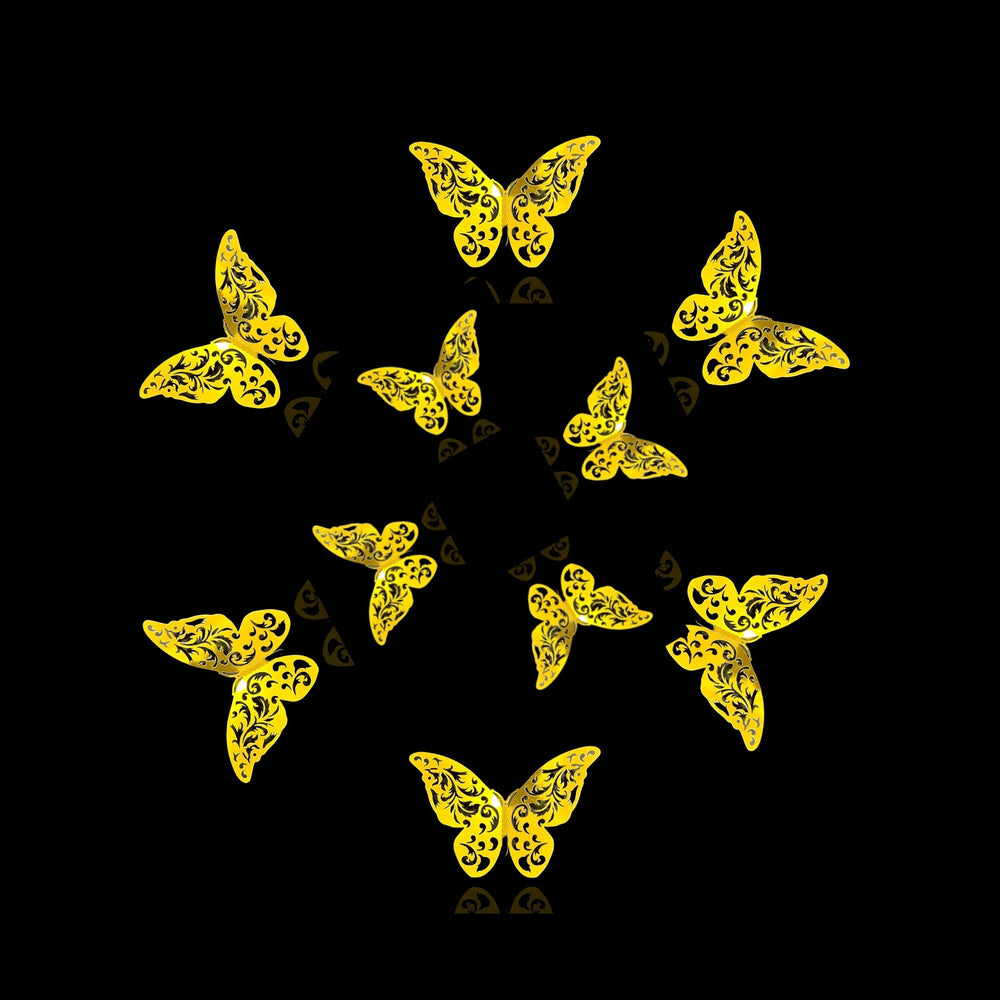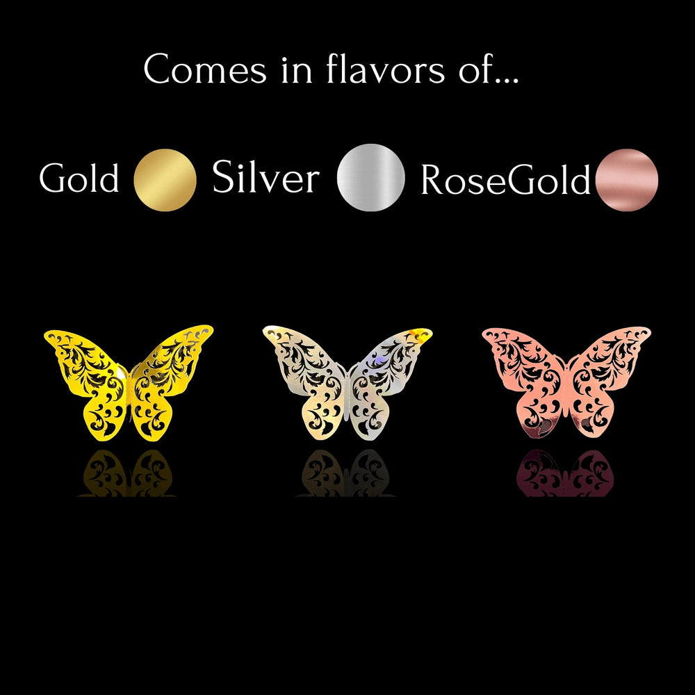 • 🦋 Exhibición deslumbrante: Disponibles en oro brillante, plata y oro rosa, estas exquisitas mariposas están destinadas a iluminar cualquier habitación o evento. Sus tonos metálicos atrapan la luz y crean un espectáculo cautivador que baila en tus paredes.