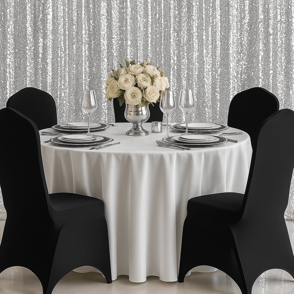 Looking for a way to glam up your chairs without breaking the bank? These black spandex chair covers are your shortcut to polished, modern, event-ready vibes. Designed to fit most banquet-style chairs without armrests, they stretch into place for a smooth, snug look—zero wrinkles, 100% style.