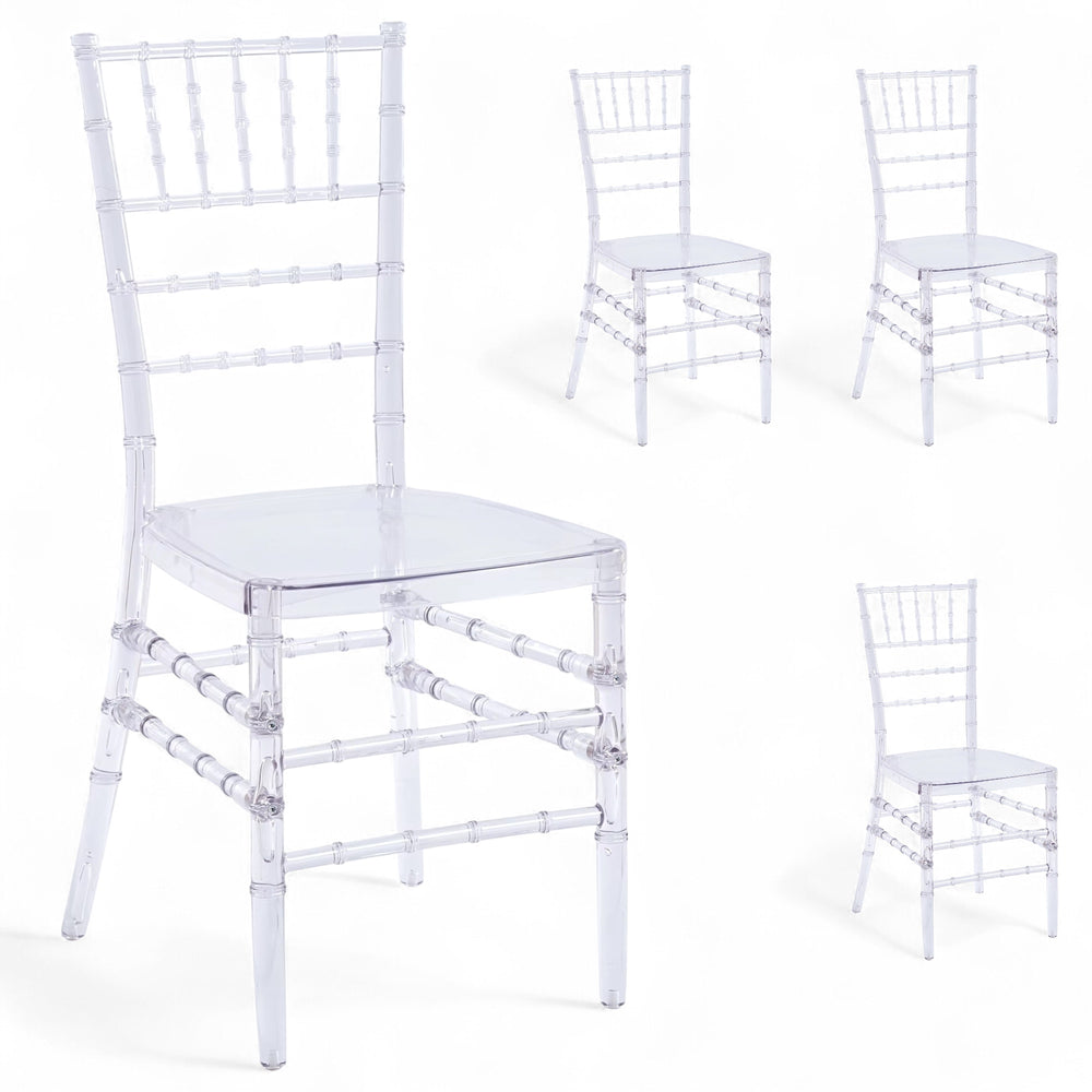 Upgrade your event seating with this set of 4 clear Chiavari chairs, the ultimate combination of elegance and durability. Perfect for weddings, banquets, parties, and upscale dining venues, these transparent Chiavari chairs offer a modern, stylish look while remaining lightweight and easy to handle.