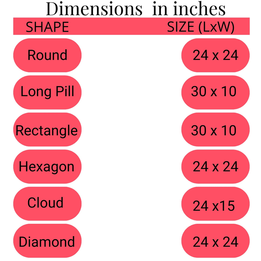 Estos paneles de letreros livianos, que se usan comúnmente como accesorios de fondo, son una excelente manera de agregar ese toque personal a su evento. Mezcle y combine formas (por ejemplo, un letrero de píldora largo sobre un fondo cuadrado o un letrero redondo sobre un arco) para agregar arte dimensional a su decoración.