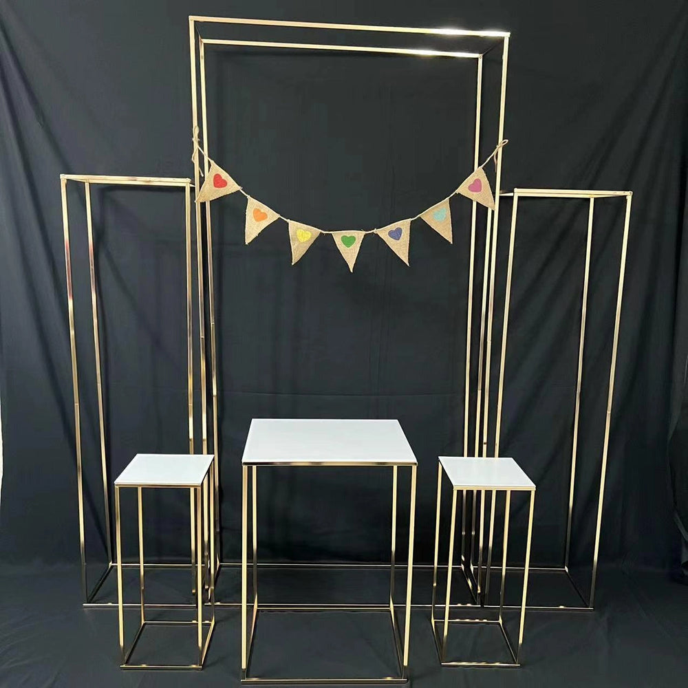 Soportes para fondo de boda cuadrados dorados de 3 piezas