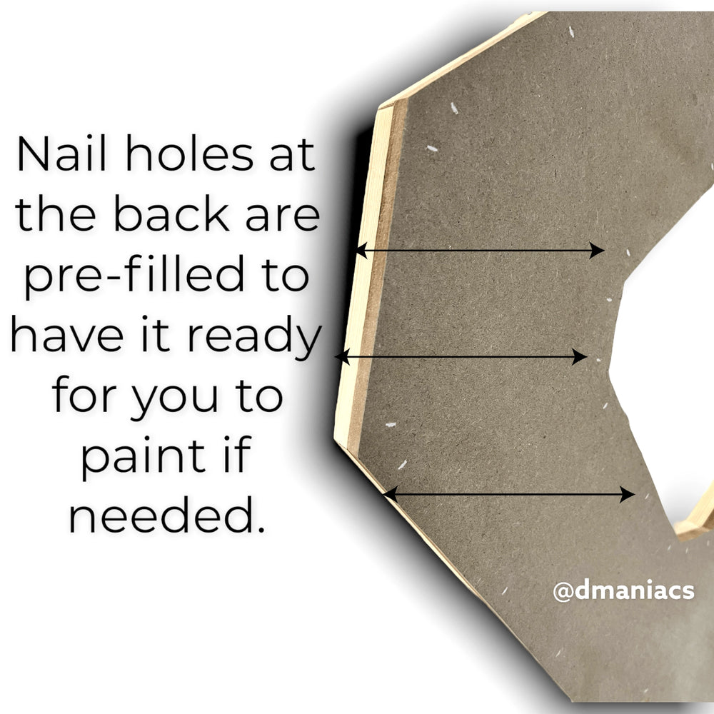 Intentamos mantener la parte delantera completamente libre de marcas de tornillos o clavos. Sin embargo, estas son visibles en la parte trasera, como se muestra en una de las fotos. Rellenaremos previamente los agujeros con masilla para madera para que sus números estén listos para pintarlos si es necesario. Si no planea pintarlos... Entonces, menos mal que están en la parte trasera, ¿no? Esperamos que esto no le importe.