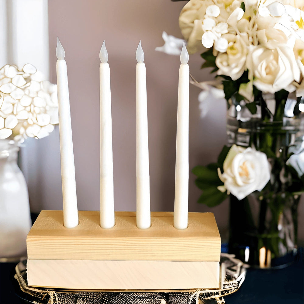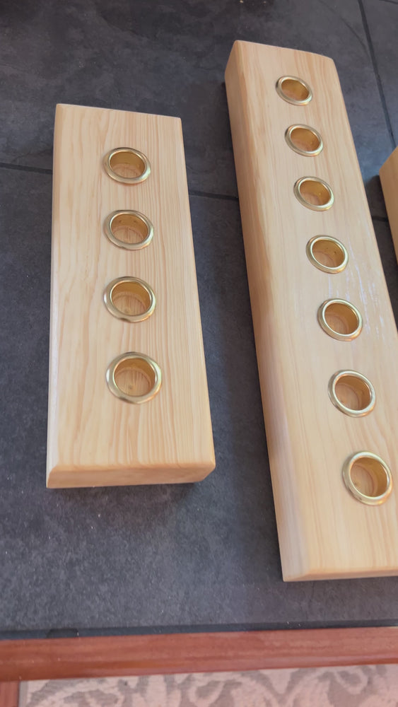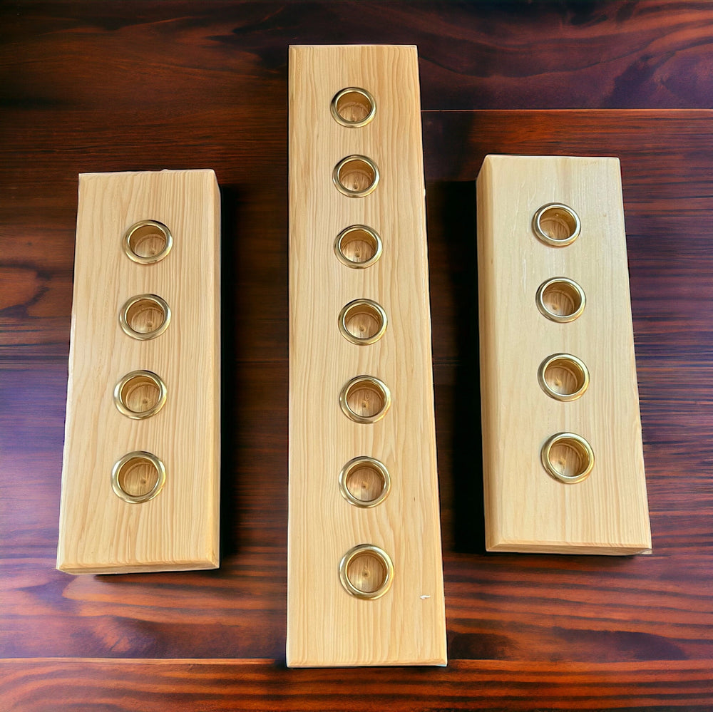 Los candelabros cónicos de madera natural tienen capacidad para entre 3 y 7 velas (velas no incluidas)