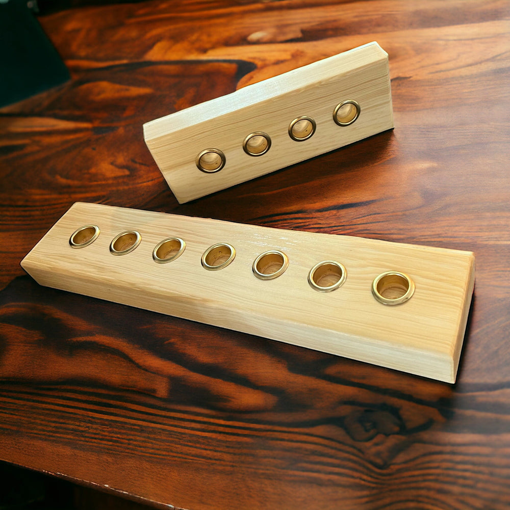 Colores: Se envía en su color natural de madera. Las pequeñas imperfecciones y nudos de la madera son naturales e incluso realzan la belleza de este candelabro.