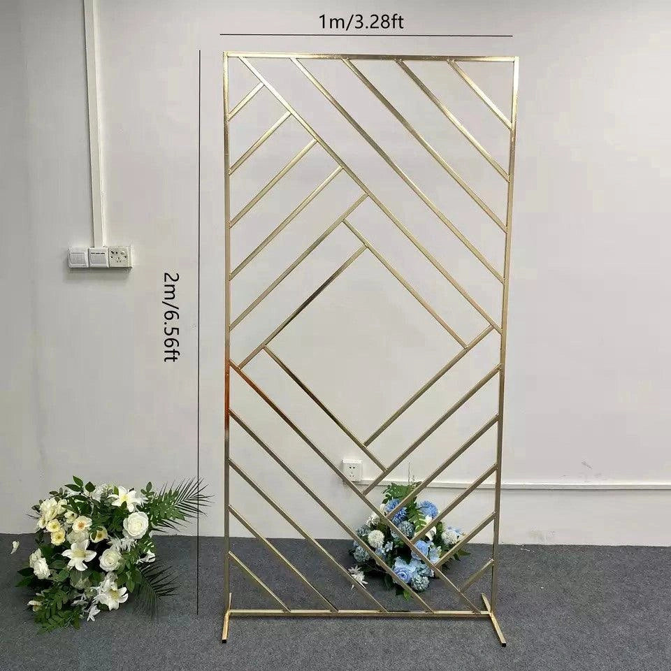 Presentamos el "Fondo geométrico dorado brillante para bodas", una pieza llamativa y moderna diseñada para ser el punto focal de la decoración de su evento. Ya sea que esté organizando una boda suntuosa, una celebración íntima de compromiso o un elegante evento corporativo, este fondo geométrico es un testimonio de estilo y sofisticación moderna.