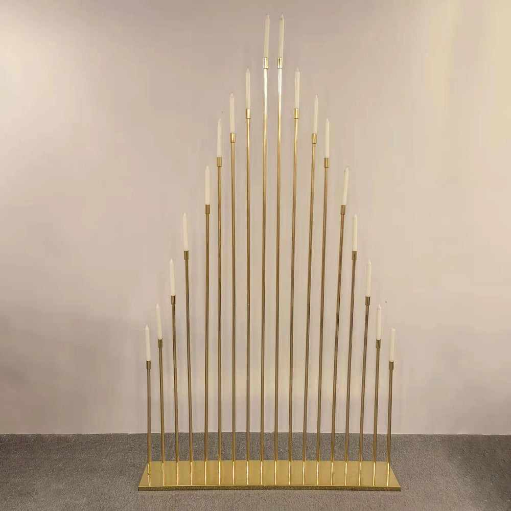 Este exquisito candelabro alto, de unos impresionantes 1,80 metros de altura, transforma cualquier boda en un espacio de opulencia y grandeza. El acabado dorado brillante refleja la luz de forma hermosa y aporta un brillo cálido y acogedor al lugar de celebración. Tanto si estás planeando una ceremonia íntima como una celebración suntuosa, estos candelabros seguro que dejarán huella.