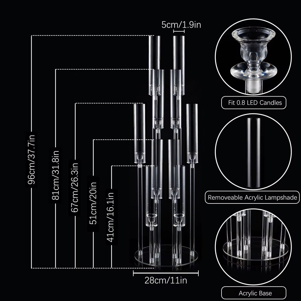 • 1 x 10-Arm Acrylic Candelabra Base & Stem Kit