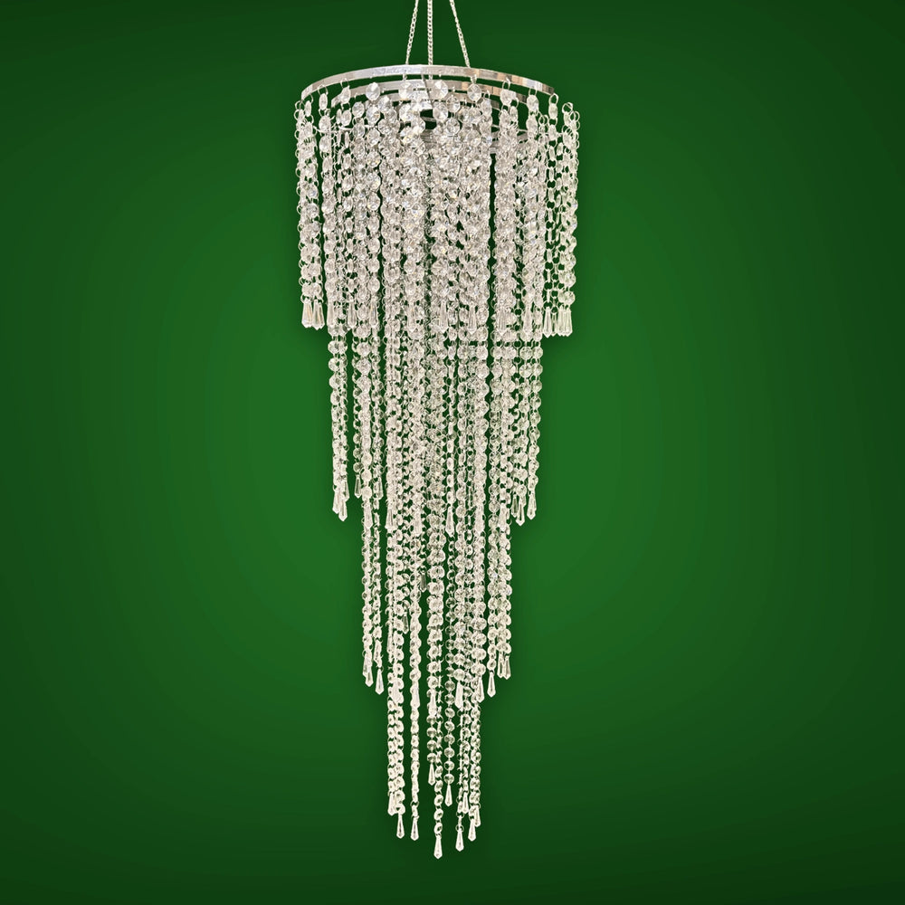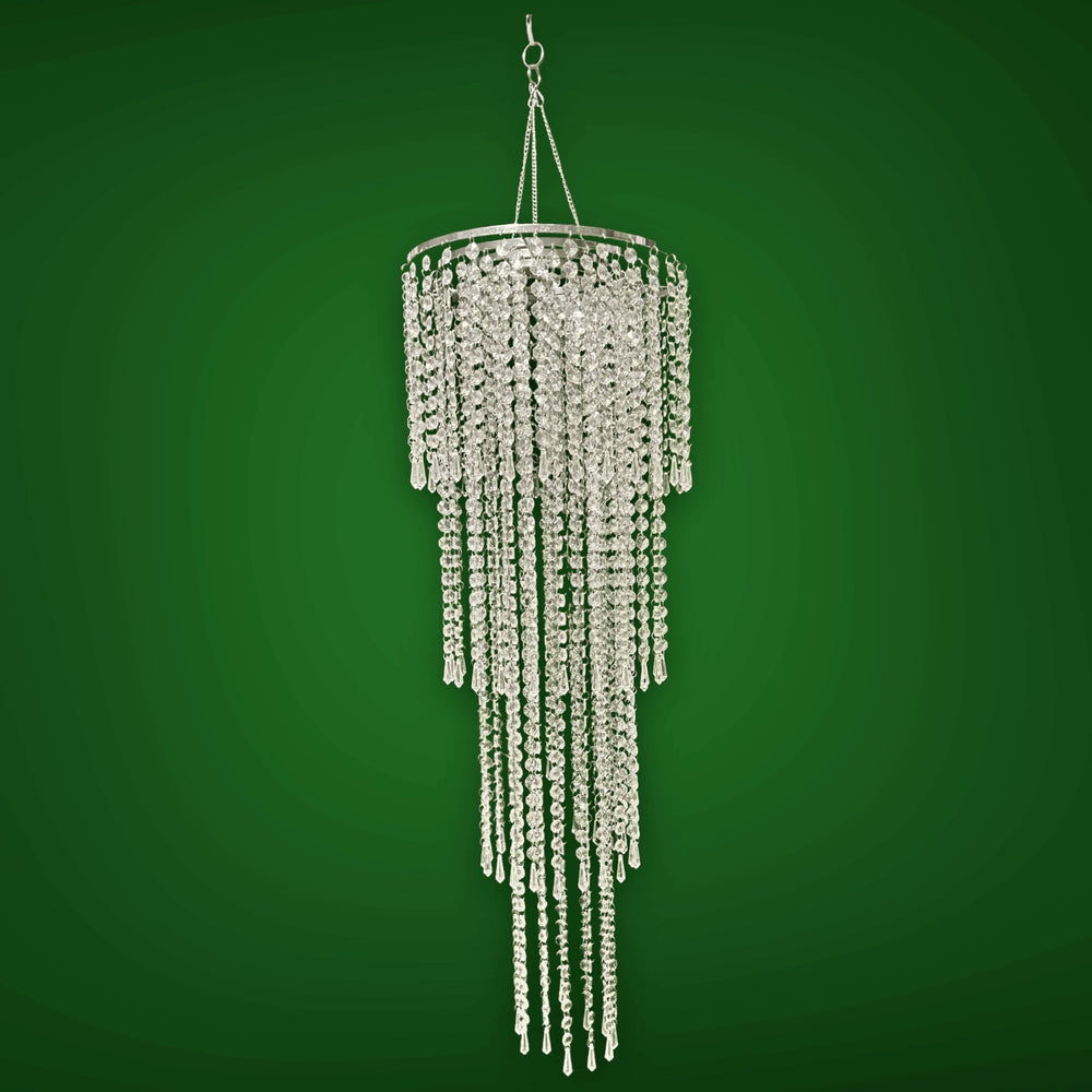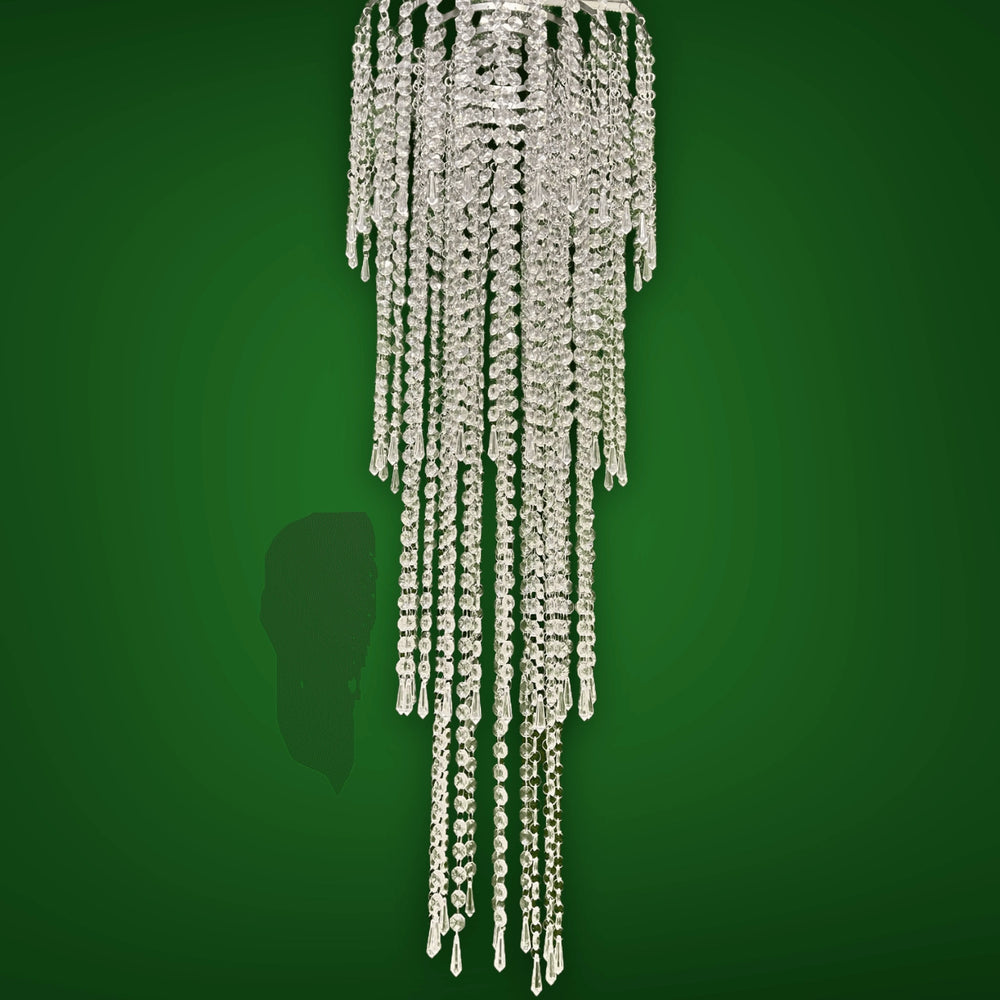This stunning hanging crystal beaded wedding ceiling decoration centerpiece is the perfect way to add a touch of elegance and sophistication to your special day. Made with 14mm clear crystal beads and suspended on a silver chrome metal ring, this centerpiece will sparkle and shine in the light, creating a magical and unforgettable atmosphere.